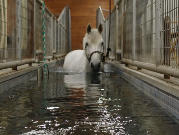 The HydroHorse Aquatred at Still Creek Farm is a submerged, hydraulic-powered treadmill that promotes therapeutic healing, strengthening, and conditioning. The 12 foot belt accommodates both walking, as well as trotting, and allows exercise in a controlled, low impact environment, which helps to increase the strength of tendons, ligaments, and joint capsules. The Aquatred is ideal for conditioning, as it builds top-lines through strengthening and developing abdominal, spinal, and hind muscular groups. After every session, every horse is bathed in the neighboring wash racks to ensure optimal coat and hair health.